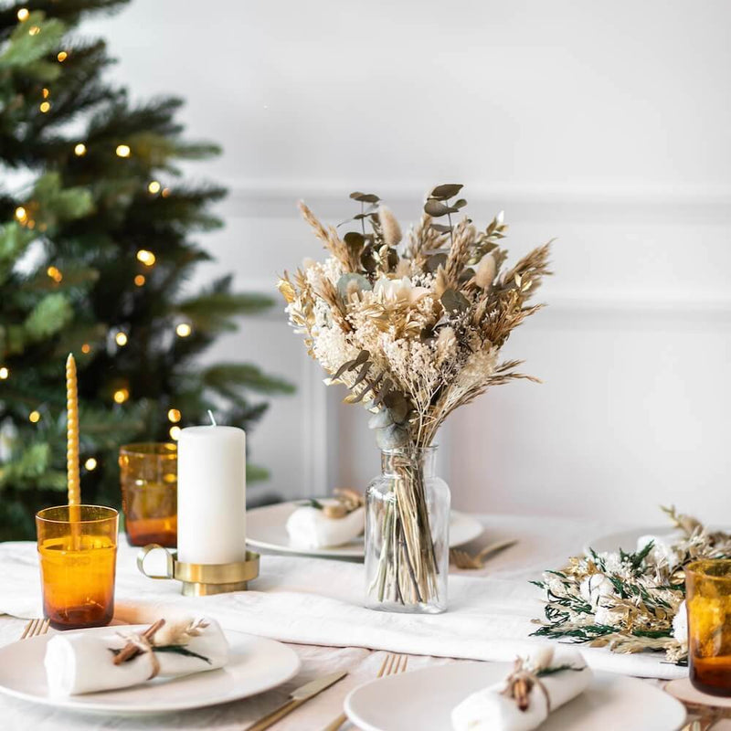 Wählen Sie getrocknete Blumen oder Kerzen für ein faszinierendes Tischzentrum