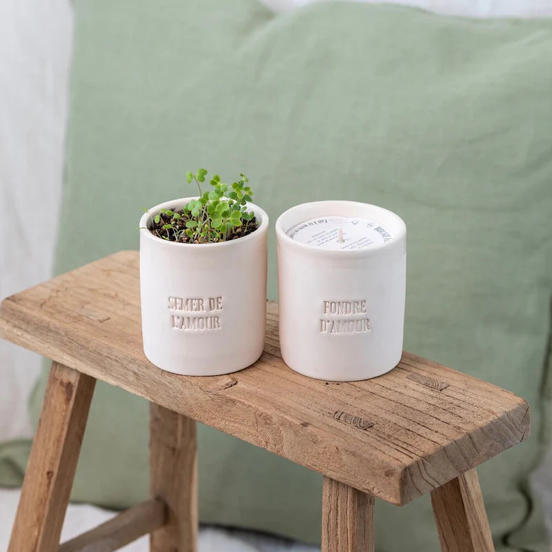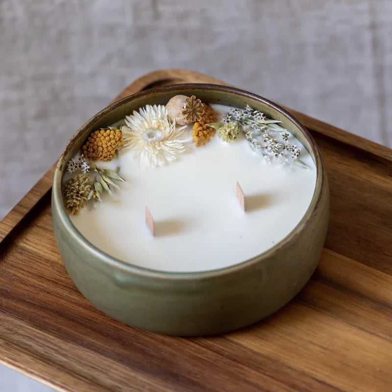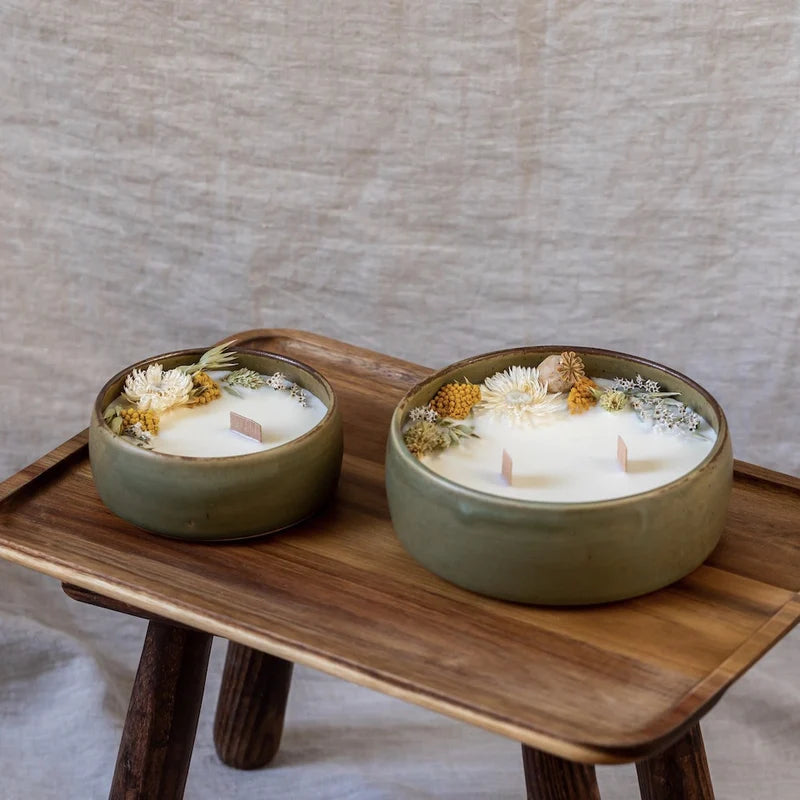 Alle unsere Kerzen werden von Hand mit pflanzlichem Wachs (Soja) gegossen und wir verwenden natürliche Düfte aus Grasse. Unsere Töpfe werden auch aus Keramik oder Glas handgefertigt. Wir verwenden entweder Baumwolldochte oder Holzdochte. In Bezug auf Düfte finden Sie verschiedene Noten, die an die verschiedenen Jahreszeiten erinnern. Insbesondere blumige Noten wie Baumwolle, Orangenblüte, Lavendel, Jasmin, Flachsblüte... Winterdüfte wie Moschus, Amber, Zimt... Diese poetischen Kreationen sind perfekt, um sich einen ruhigeren Moment zu gönnen oder ein sicheres Geschenk zufrieden stellen.