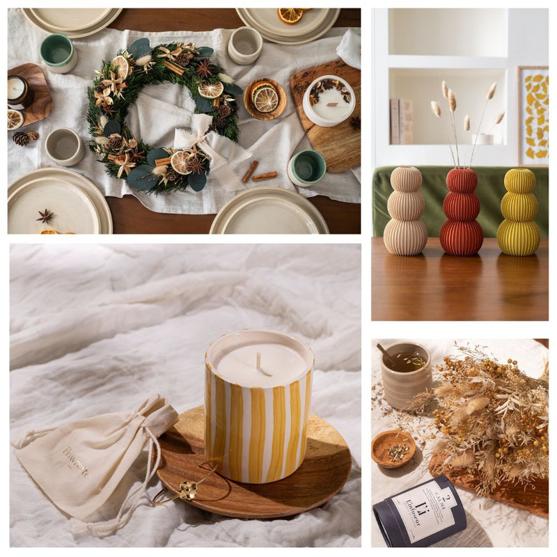 Sie finden Vasen, Kissenbezüge, dekorative natürliche Kerzen mit zarten Parfums, Lagerräumen, Körben, Schreibwaren ... und natürlich eine sehr schöne Sammlung von Gerichten und außergewöhnlichen Keramikstücken in sehr schönen Emailen. Wenn Sie sie noch nicht haben, raten wir Ihnen, auch unsere Weihnachtsdekorationen zu sehen.